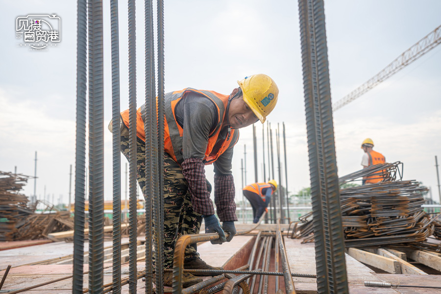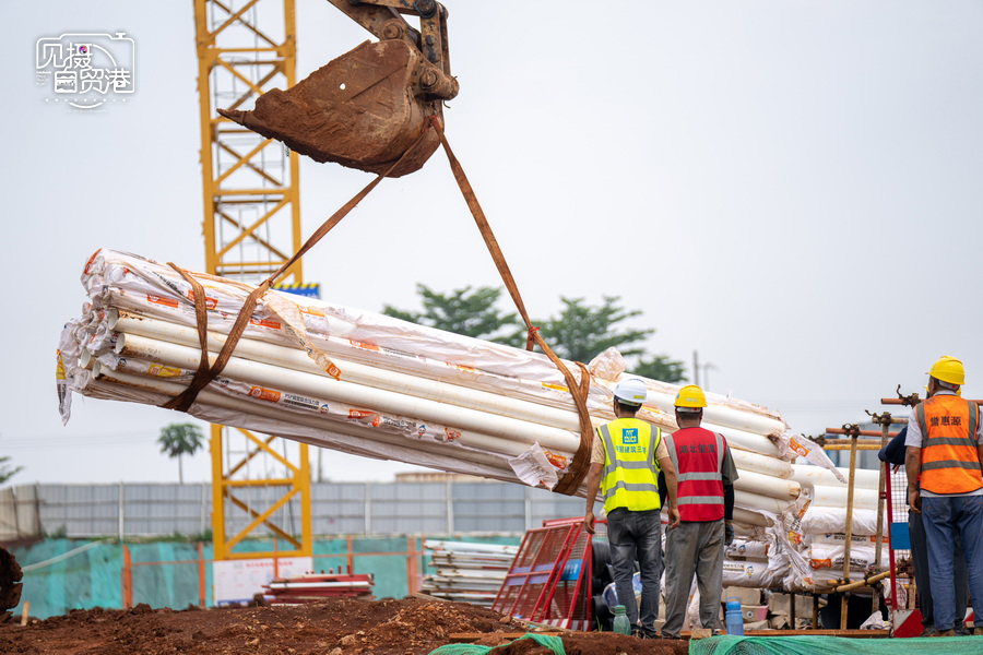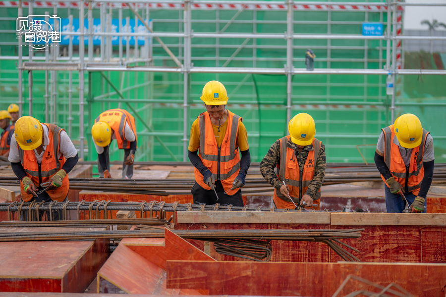 2024年5月13日,海南临空航空特货“超级运营人”项目工人正在施工。