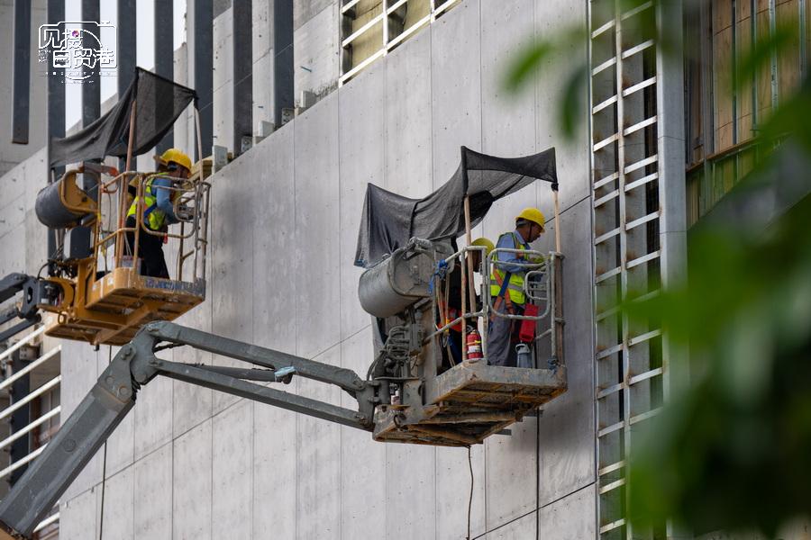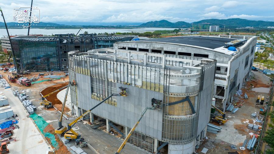 2024年5月22日,在陵水黎安国际教育创新试验区综合体育中心项目施工现场,建设者们在作业。